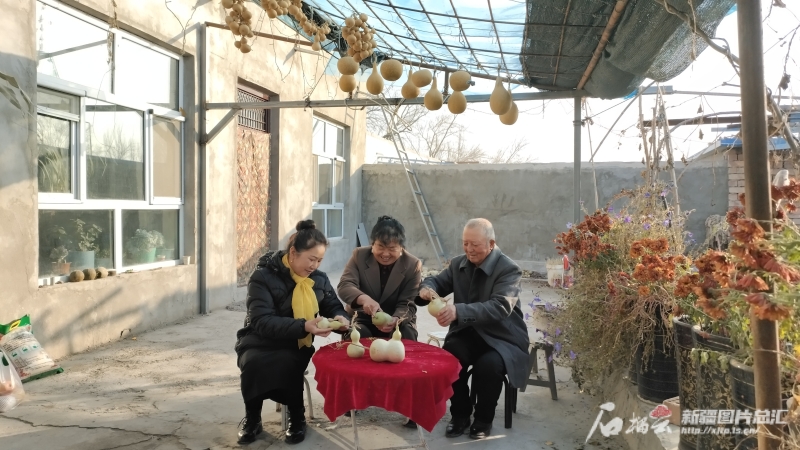 11月19日,焉耆回族自治縣永寧鎮(zhèn)下岔河村陽光明媚。村民陳新萍忙完家務,早早來到同村的帕提古麗·艾沙家,兩人開始一起摘葫蘆、裝筐、去皮,為趕制下一批烙畫葫蘆做準備。
