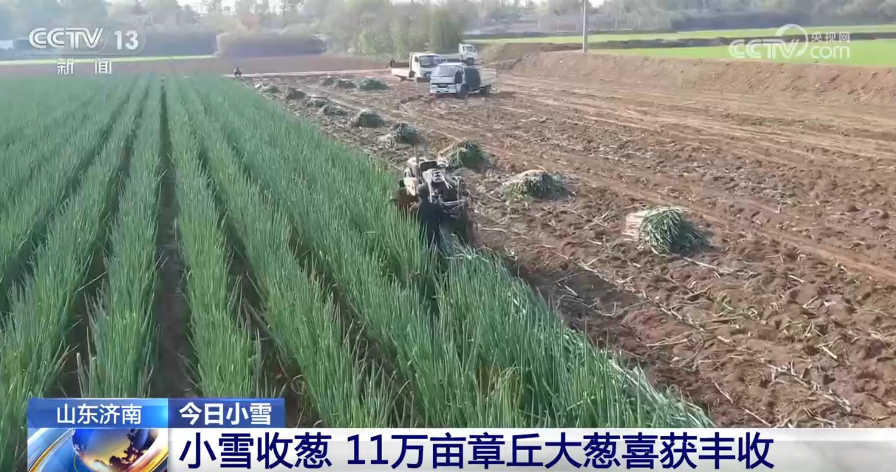 俗語(yǔ)說(shuō)“小雪收蔥,不收就空”,小雪節(jié)氣是北方大蔥收獲的時(shí)候。在山東濟(jì)南,這里自古就有種植大蔥的傳統(tǒng),眼下11萬(wàn)畝章丘大蔥喜獲豐收,村民們正忙著收蔥、賣(mài)蔥,種植基地里,大蔥收獲機(jī)的應(yīng)用大大提高了采收效率。