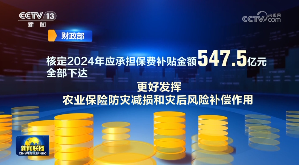 財政部日前下達(dá)2024年第二筆中央財政農(nóng)業(yè)保險保費補貼預(yù)算71.4億元,加上此前已下達(dá)的476.1億元,核定2024年應(yīng)承擔(dān)保費補貼金額547.5億元全部下達(dá),更好發(fā)揮農(nóng)業(yè)保險防災(zāi)減損和災(zāi)后風(fēng)險補償作用。
