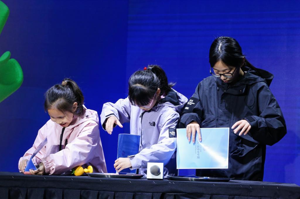 11月23日,小觀眾在浙江杭州舉辦的2024菠蘿科學(xué)獎現(xiàn)場進(jìn)行科學(xué)實(shí)驗(yàn)。新華社發(fā)
