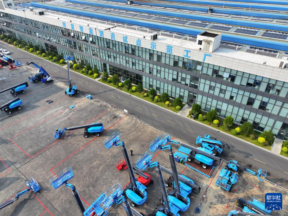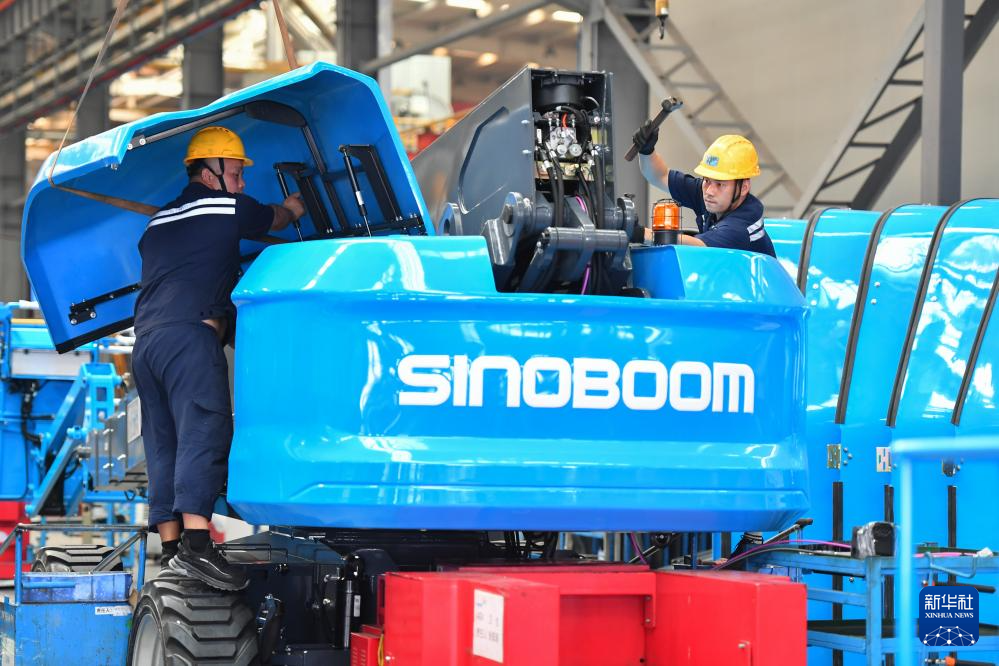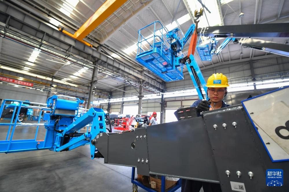 工作人員在位于寧鄉(xiāng)市的湖南星邦智能裝備股份有限公司高空作業(yè)產(chǎn)品裝備車(chē)間作業(yè)(9月27日攝)。新華社記者 陳澤國(guó) 攝