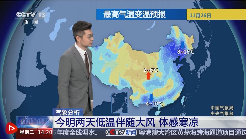 中國(guó)氣象局氣象分析師胡嘯表示,寒潮天氣過(guò)程將會(huì)在11月28日前后趨于結(jié)束,但是在結(jié)束之前仍要關(guān)注大風(fēng)降溫和強(qiáng)降雪天氣。26日早晨相比25日同一時(shí)刻,中東部大部地區(qū)氣溫已經(jīng)出現(xiàn)明顯的下降,體感寒涼。