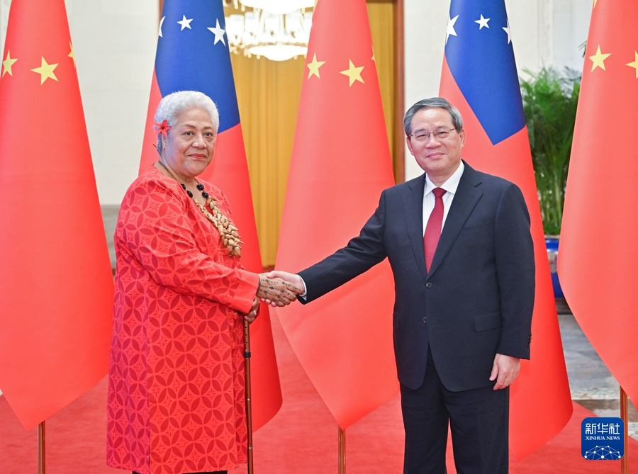 新華社北京11月26日電 國務(wù)院總理李強11月26日上午在北京人民大會堂同來華進行正式訪問的薩摩亞總理菲婭梅舉行會談。