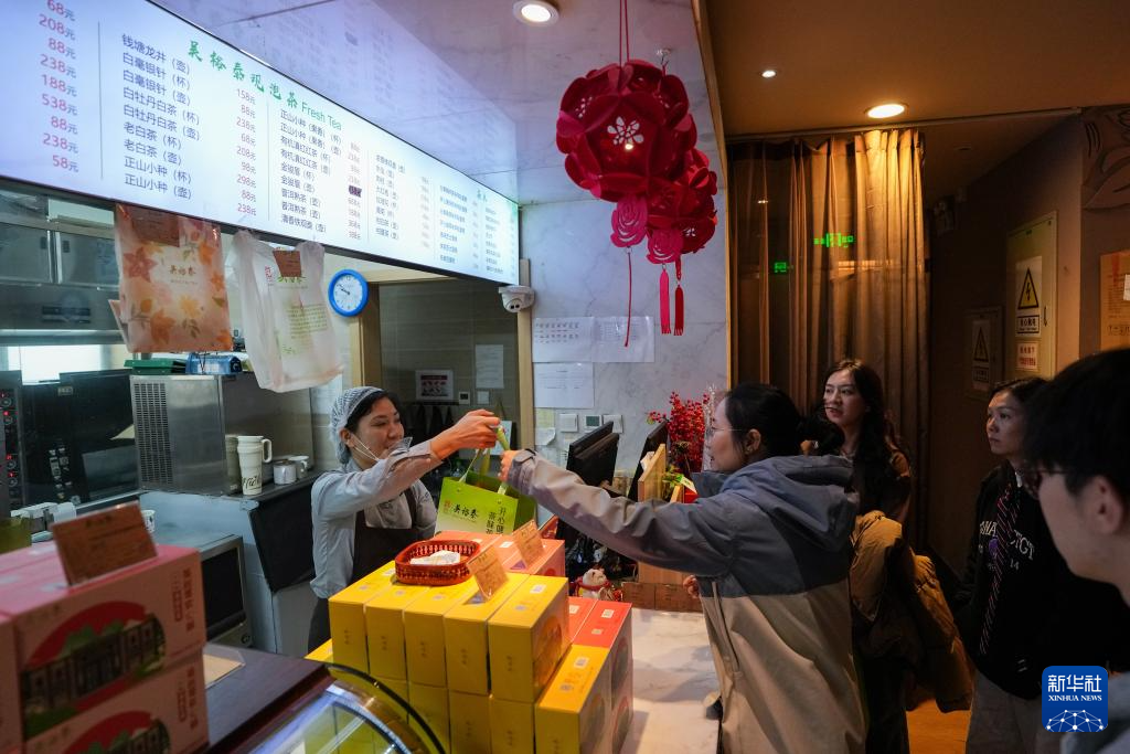 走進(jìn)吳裕泰王府井店,花茶、紅茶、綠茶、巖茶、白茶等各類新品禮盒映入眼簾。清晰的分類、有序的碼放、合理的動(dòng)線,讓顧客一眼就能選中心儀的商品。在二樓,顧客不僅可以品一杯香茗,還能觀賞茶藝表演、嘗試制作抹茶、體驗(yàn)“京繡”“皮影”等活動(dòng)。