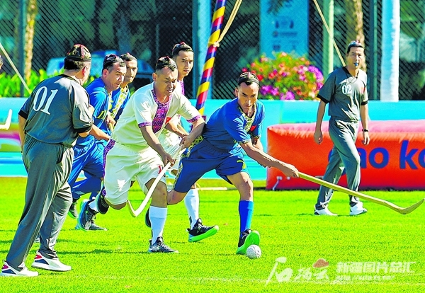 11月24日上午,男子珍珠球第二輪小組賽中山東隊與新疆隊比拼。比賽結(jié)束后,兩隊在場外同喊口號、互贈紀(jì)念品;26日,民族大聯(lián)歡文化活動上,全國各地代表團相聚“天涯海角”景區(qū),各族運動員在海邊延展出一條綿長的“民族風(fēng)景線”;27日,新疆代表團在駐地酒店精心籌備了聯(lián)歡會,新疆、湖南、云南、黑龍江等地代表團歡聚一堂,共敘友情。