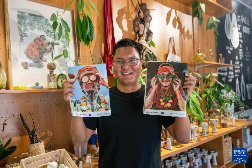 孟連縣“新農人”、“牛友果星球”工作室主人李偉展示自己拍攝的創(chuàng)意照片(10月28日攝)。新華社記者 陳欣波 攝
