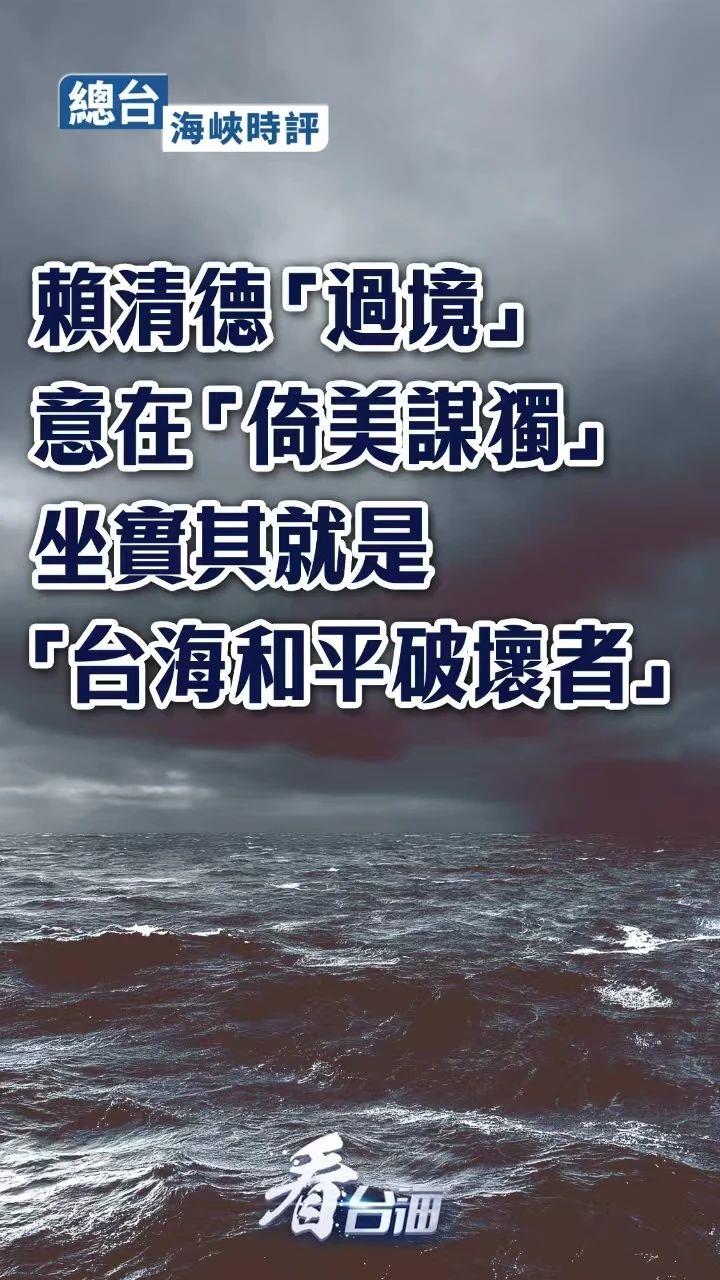 賴清德深知“過(guò)境”美國(guó)必然遭到大陸方面堅(jiān)決反對(duì)、有力反制,只會(huì)加劇臺(tái)海緊張局勢(shì)。因此,在其行前賴當(dāng)局就勾連外部勢(shì)力在國(guó)際上造勢(shì),妄圖以所謂“慣例說(shuō)”將此行正當(dāng)化,掩蓋其挑釁在先、破壞和平的惡劣本質(zhì)。臺(tái)灣是中國(guó)的臺(tái)灣,臺(tái)灣地區(qū)領(lǐng)導(dǎo)人以任何名義任何理由“過(guò)境”美國(guó),都是對(duì)一個(gè)中國(guó)原則的嚴(yán)重挑戰(zhàn)。錯(cuò)誤的所謂“慣例”不僅不是正當(dāng)化的理由,還是錯(cuò)上加錯(cuò)、惡上加惡,一步步把臺(tái)灣推向更加危險(xiǎn)的境地。