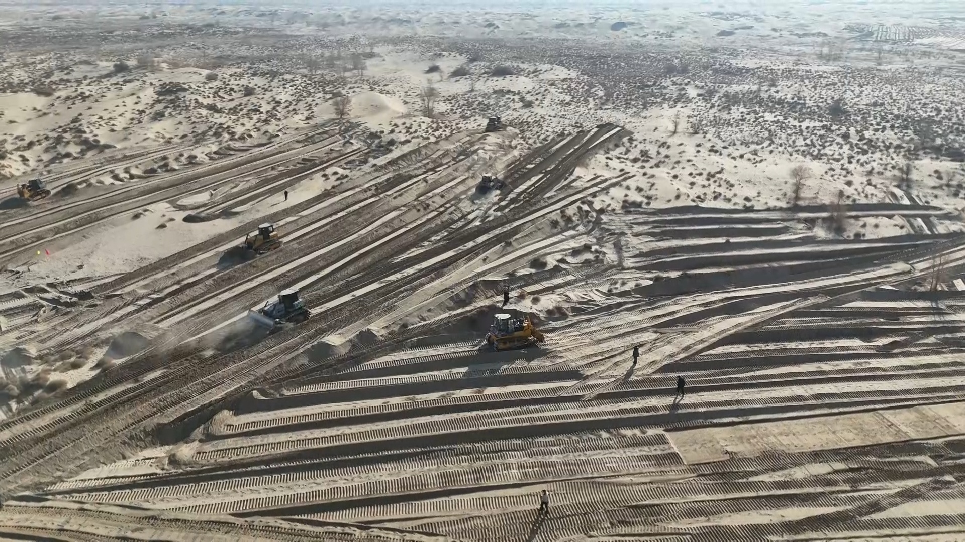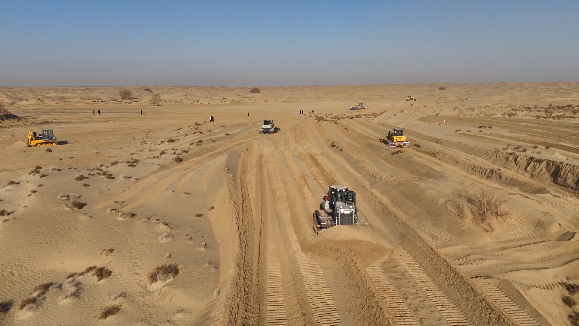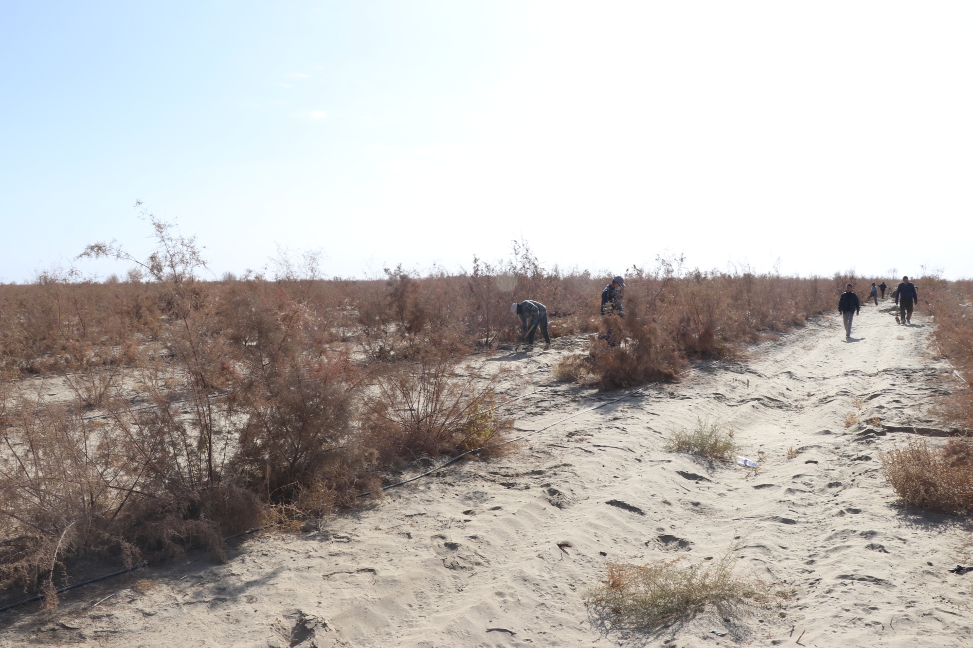 沙地平整,通過生物治沙改變當(dāng)?shù)厣鷳B(tài)環(huán)境 (墨玉縣融媒體中心供圖)