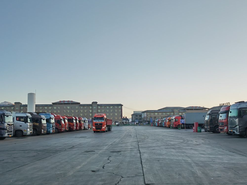 青海省格爾木昆侖物流園內的貨車整齊排列。新華社記者 王浡 攝