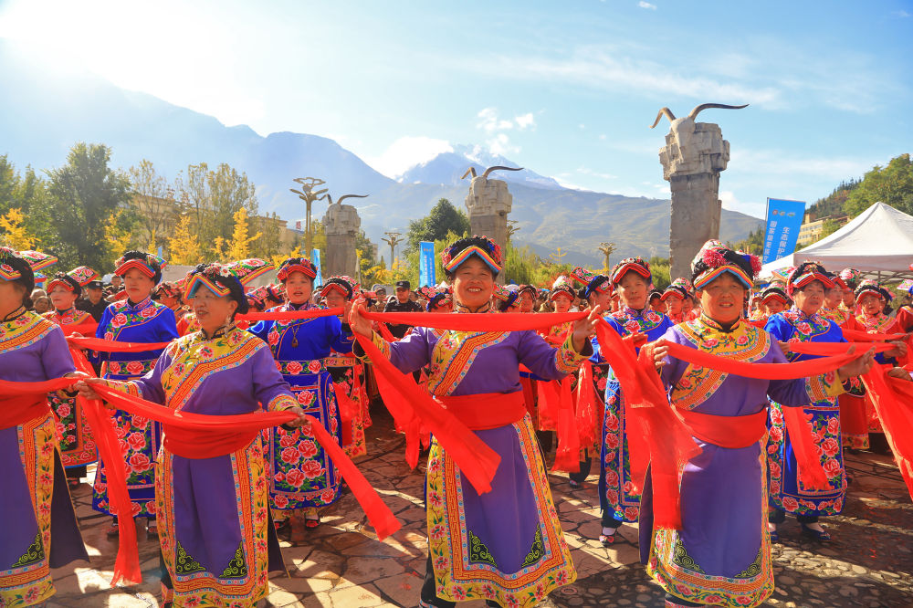 在四川省阿壩藏族羌族自治州茂縣中國古羌城,當地羌族群眾載歌載舞慶祝羌年(2024年11月1日攝)。新華社發(fā)(何清海攝)