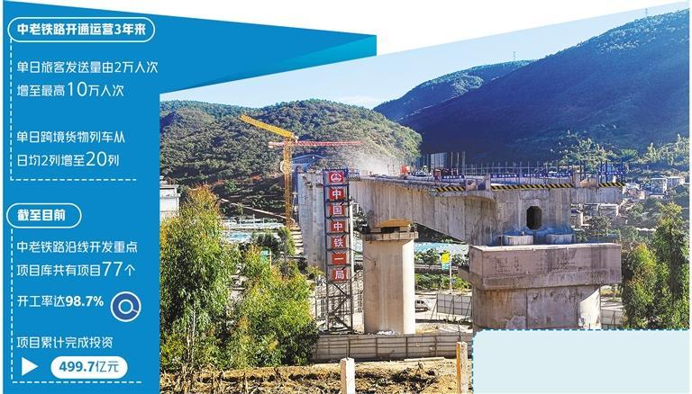 3年來(lái),云南省搶抓中老鐵路機(jī)遇,以通道能力提升、物流樞紐建設(shè)、沿線產(chǎn)業(yè)開(kāi)發(fā)和經(jīng)營(yíng)主體培育為重點(diǎn),切實(shí)打造一條開(kāi)放發(fā)展的黃金道路。截至目前,中老鐵路沿線開(kāi)發(fā)重點(diǎn)項(xiàng)目庫(kù)共有項(xiàng)目77個(gè),開(kāi)工率達(dá)98.7%,項(xiàng)目累計(jì)完成投資499.7億元,投資完成率超66.7%,對(duì)促進(jìn)中老鐵路沿線開(kāi)發(fā)發(fā)揮了重要作用。