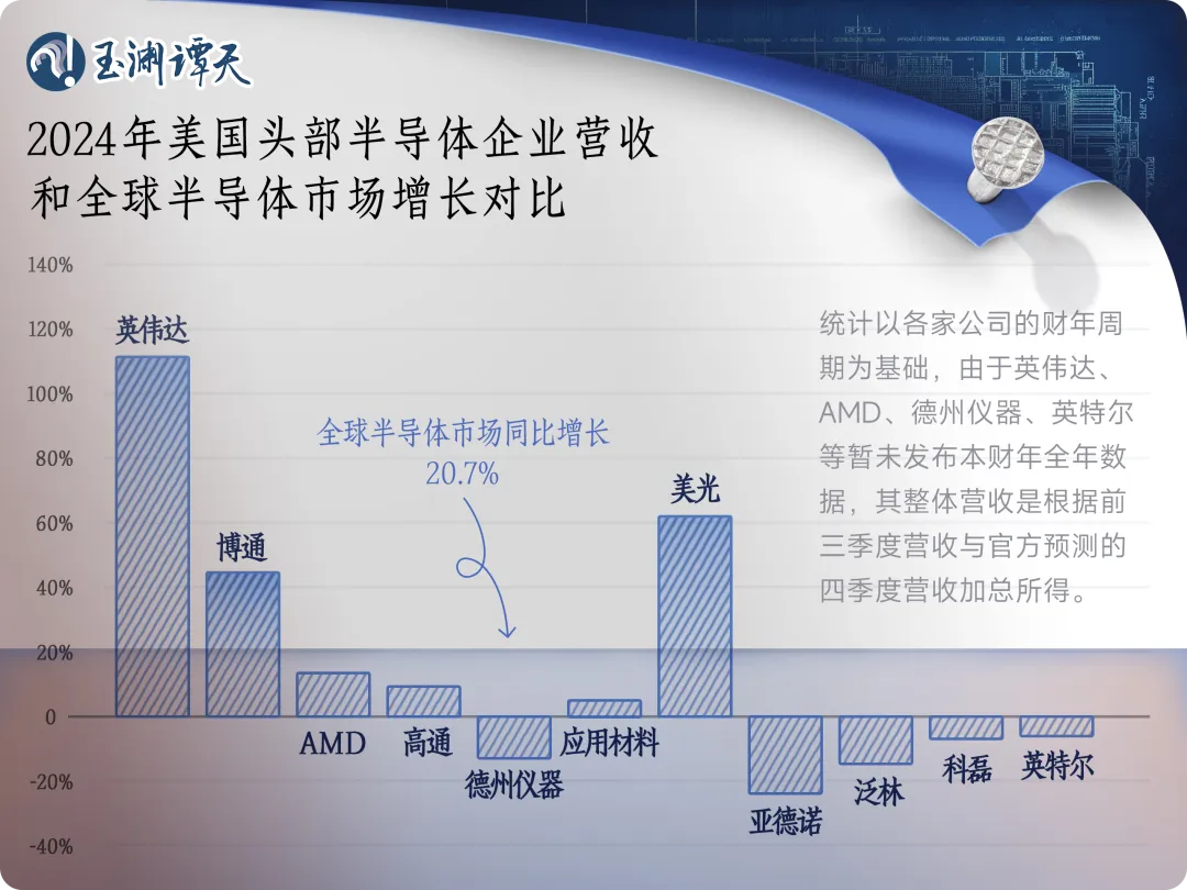 2024年,全球芯片市場都在回暖,預(yù)計(jì)同比增長20.7%。與此同時,英偉達(dá)2024年?duì)I收預(yù)計(jì)同比增長超100%,成為美國芯片市場增長最大的動力。