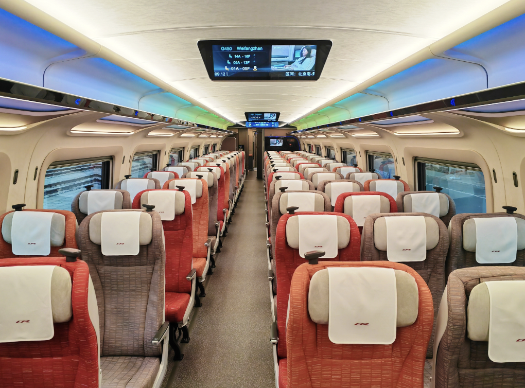 CR450AF動車組的二等座車廂。新華社記者王聿昊 攝