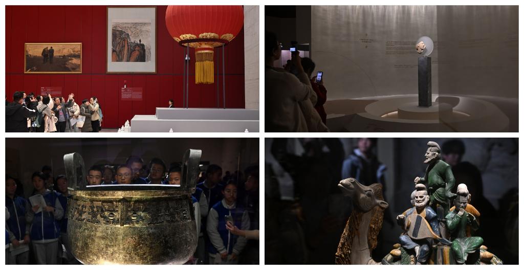 拼圖:走進(jìn)中國(guó)國(guó)家博物館感受“文博熱”:(左上)“風(fēng)展紅旗如畫(huà)——館藏紅色經(jīng)典文物展”(右上)“美的多元——古希臘的藝術(shù)與生活”展覽(左下、右下)“古代中國(guó)”基本陳列展