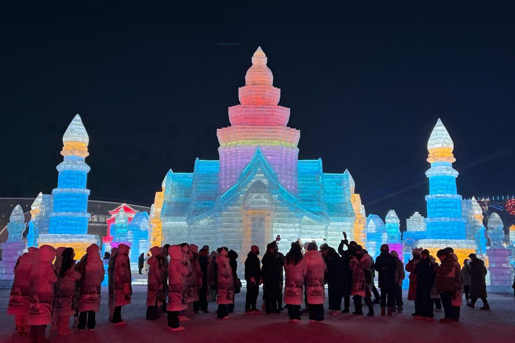 我國東北地區(qū)的冷與東南亞地區(qū)的熱,形成鮮明對比,吸引外國游客“一路北上”。在哈爾濱冰雪大世界,一座用冰復刻的“大皇宮”高21.5米,受到游客歡迎?!啊蕦m’晶瑩剔透,燈光下流光溢彩,太夢幻了!”泰國游客金金說。