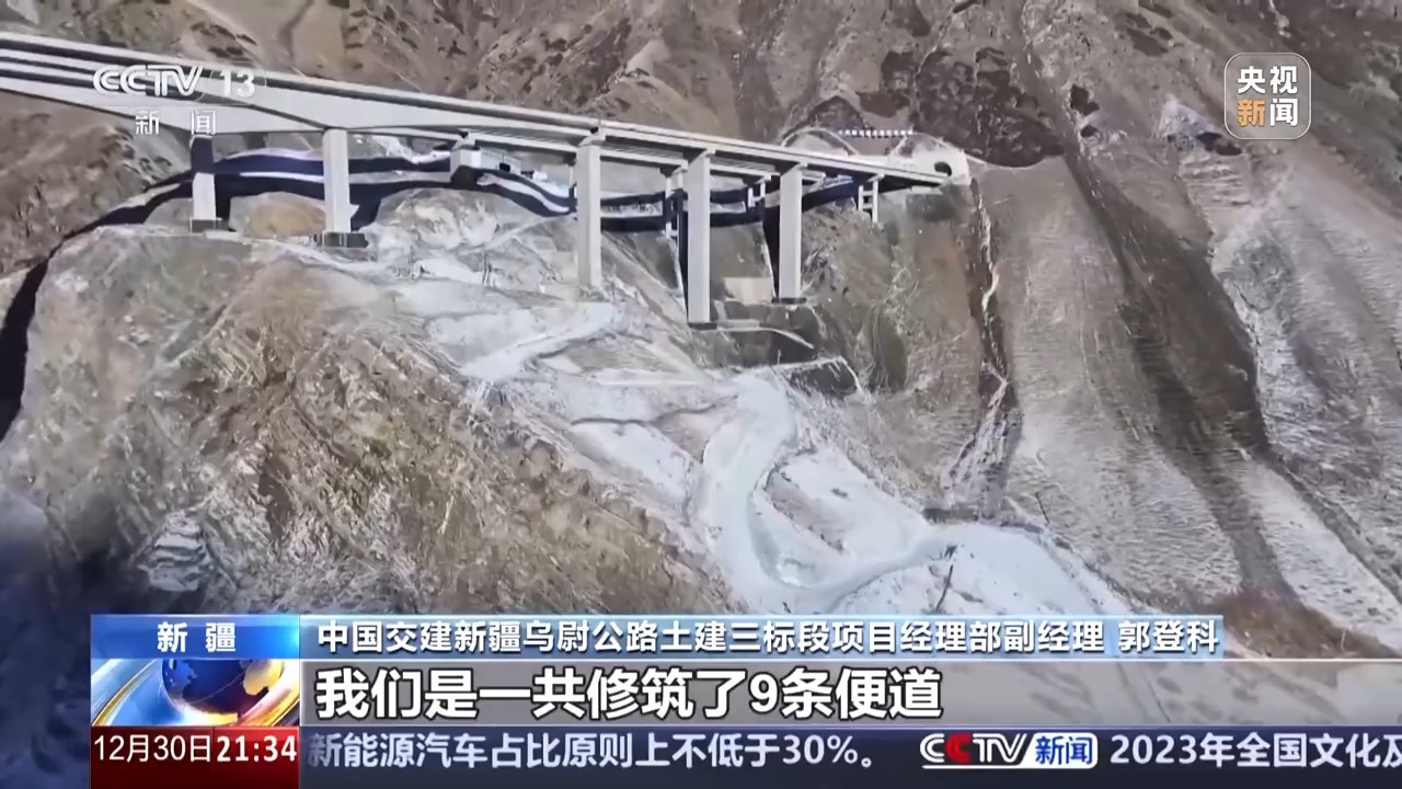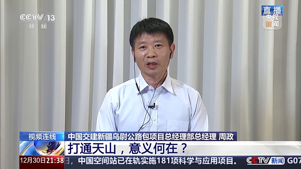 中國交建新疆烏尉公路包項(xiàng)目總經(jīng)理部總經(jīng)理 周政:對,我們洞口最低溫度能到零下40多攝氏度。前幾天還是零下35攝氏度。今天我們在山上,白天也有零下10攝氏度左右。