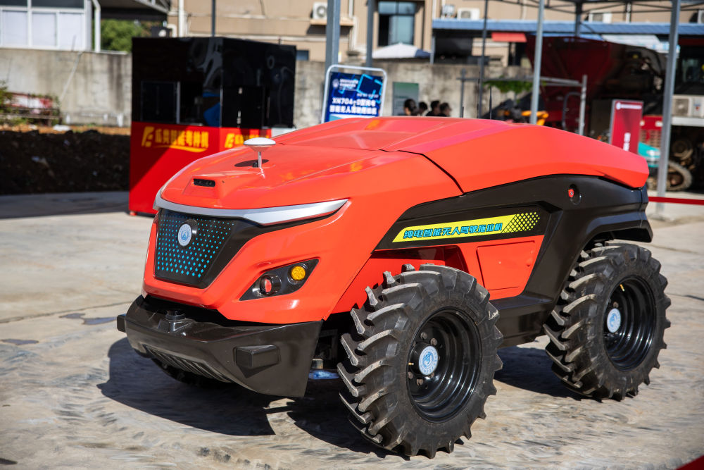 2024年11月26日在湖南省農(nóng)業(yè)裝備研究所試驗基地拍攝的純電智能無人駕駛拖拉機。新華社記者 陳思汗 攝