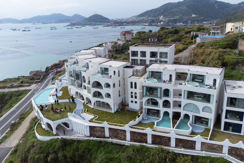 2024年4月21日在浙江省舟山市嵊泗縣泗洲塘村拍攝的共富民宿集聚區(qū)(無人機照片)。近年來,嵊泗縣持續(xù)推進“千萬工程”美麗海島漁村建設,通過漁村環(huán)境整治、節(jié)點景觀提升、休閑街區(qū)打造等措施將海島美景串珠成鏈。新華社發(fā)(姚凱樂 攝)