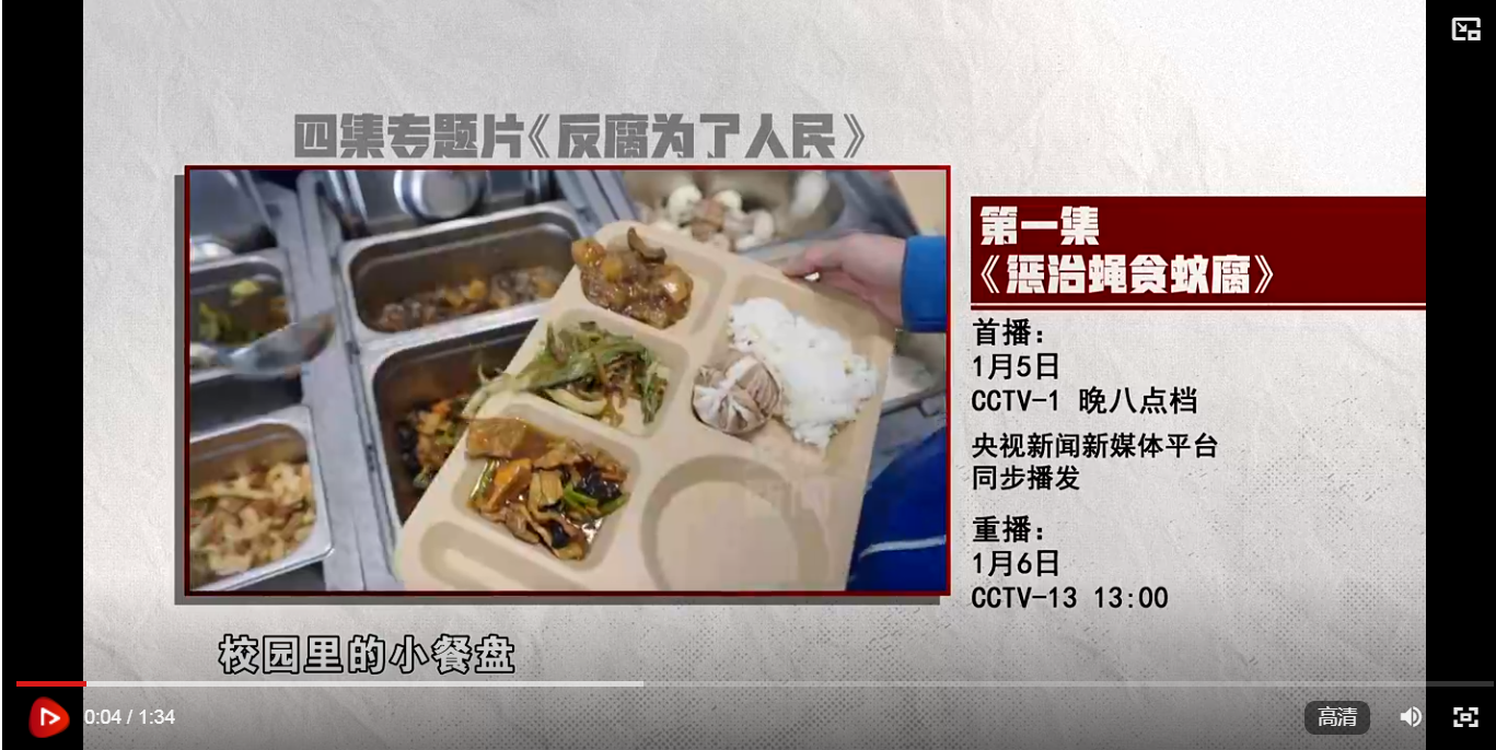 習(xí)近平總書記強(qiáng)調(diào),凡是群眾反映強(qiáng)烈的問題都要嚴(yán)肅認(rèn)真對待,凡是損害群眾利益的行為都要堅決糾正。二十屆中央紀(jì)委三次全會上,習(xí)近平總書記對整治群眾身邊不正之風(fēng)和腐敗問題作出重要指示,要求懲治蠅貪蟻腐,讓群眾有更多獲得感。中央紀(jì)委國家監(jiān)委堅決貫徹黨中央的決策部署,在全國部署開展群眾身邊不正之風(fēng)和腐敗問題集中整治。電視專題片《反腐 為了人民》第一集《懲治蠅貪蟻腐》,講述紀(jì)檢監(jiān)察機(jī)關(guān)聚焦群眾反映強(qiáng)烈問題,推動開展校園餐、高標(biāo)準(zhǔn)農(nóng)田建設(shè)、住房保障和安居工程等整治工作,讓群眾從一個個具體問題的解決中感受到整治成果,不斷增強(qiáng)獲得感、幸福感、安全感。央視綜合頻道1月5日晚8點(diǎn)檔播出,央視新聞新媒體平臺同步播發(fā),敬請關(guān)注。