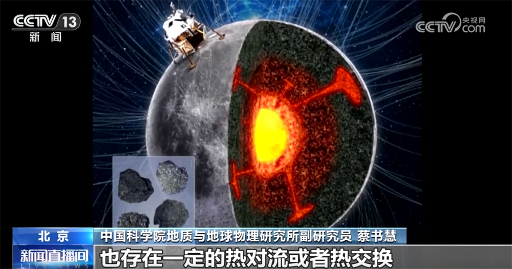 蔡書慧稱:“發(fā)現(xiàn)距今20億年的時候,也就是月球演化的偏中后期,它還存在一個非常弱的磁場,強度是2—4個微特,不到現(xiàn)今地球磁場的10%。這說明在距今20億年的時候,月球的內(nèi)部可能還是有一定的活力的,也存在一定的熱對流或者熱交換?!?/p>