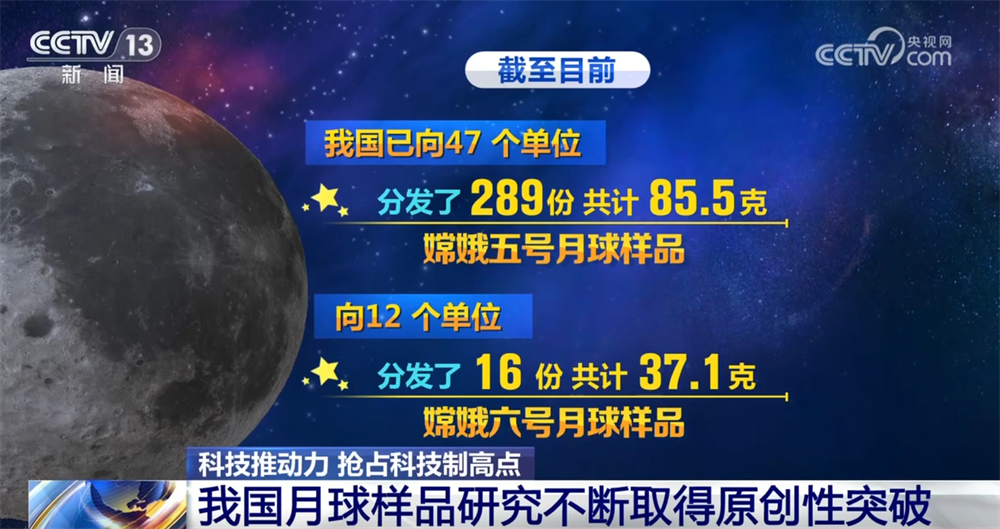 截至目前,我國已向47個單位分發(fā)了289份共計85.5克嫦娥五號月球樣品,向12個單位分發(fā)了16份共計37.1克嫦娥六號月球樣品。利用最新分發(fā)的嫦娥六號月球樣品,中國科學院國家天文臺和廣州地球化學研究所還在月背樣品特征、月球演化活動等領域取得了一批重要成果。2025年,更多月壤研究項目正在陸續(xù)部署和開展,各項研究加速向前,有望幫助我們認識一個“全新”的月球。