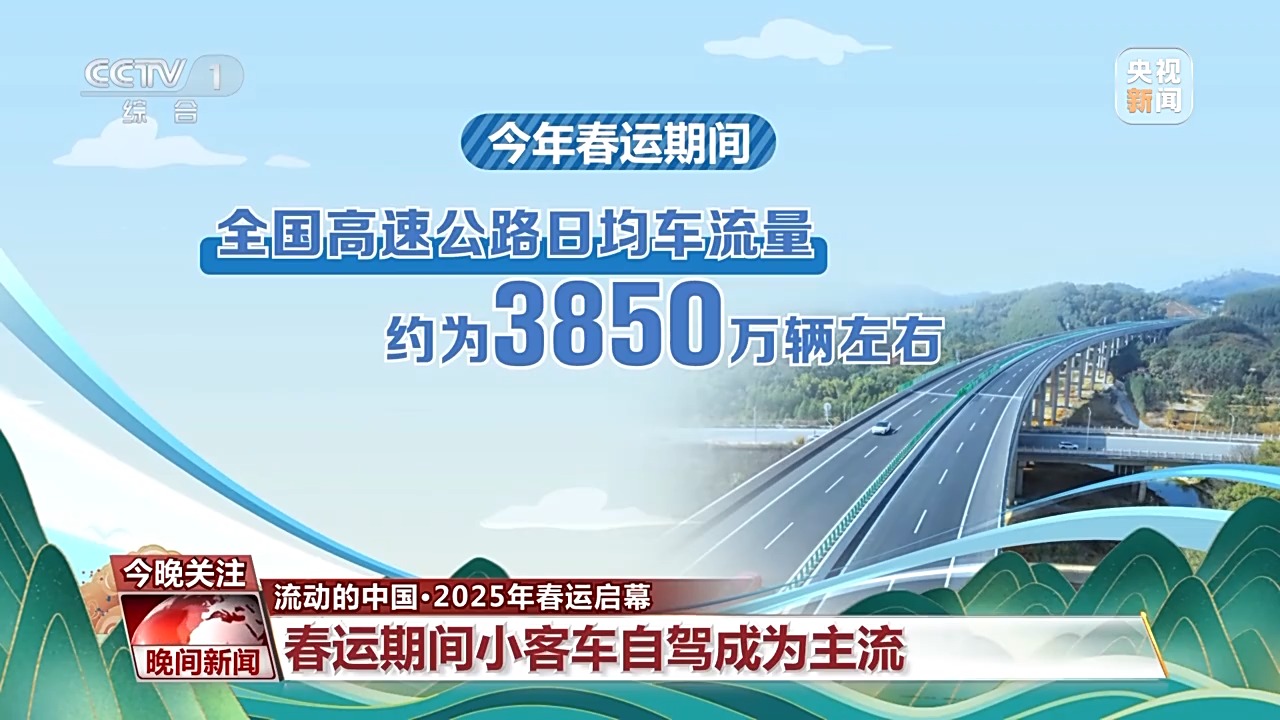 公路方面,春運(yùn)期間舉家返鄉(xiāng)出行多,今年春運(yùn)期間全國(guó)高速公路日均車(chē)流量約為3850萬(wàn)輛左右。長(zhǎng)途和中短途出行交織,出行目的地多樣化,小客車(chē)自駕成為主流,其中新能源車(chē)輛持續(xù)增長(zhǎng)。