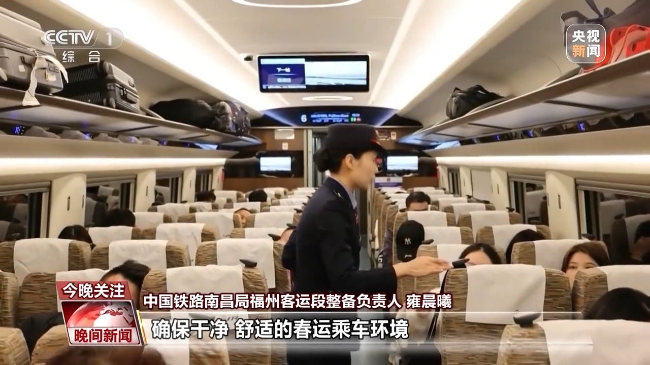 中國(guó)鐵路南昌局福州客運(yùn)段整備負(fù)責(zé)人 雍晨曦:今年春運(yùn),客流高峰日預(yù)計(jì)出現(xiàn)在正月初八。為此,我們準(zhǔn)備了25萬(wàn)余件高溫熨燙消毒臥具和頭靠巾,增配了23萬(wàn)余件滿(mǎn)足旅途需求的衛(wèi)生紙等消耗品,確保干凈、舒適的春運(yùn)乘車(chē)環(huán)境。