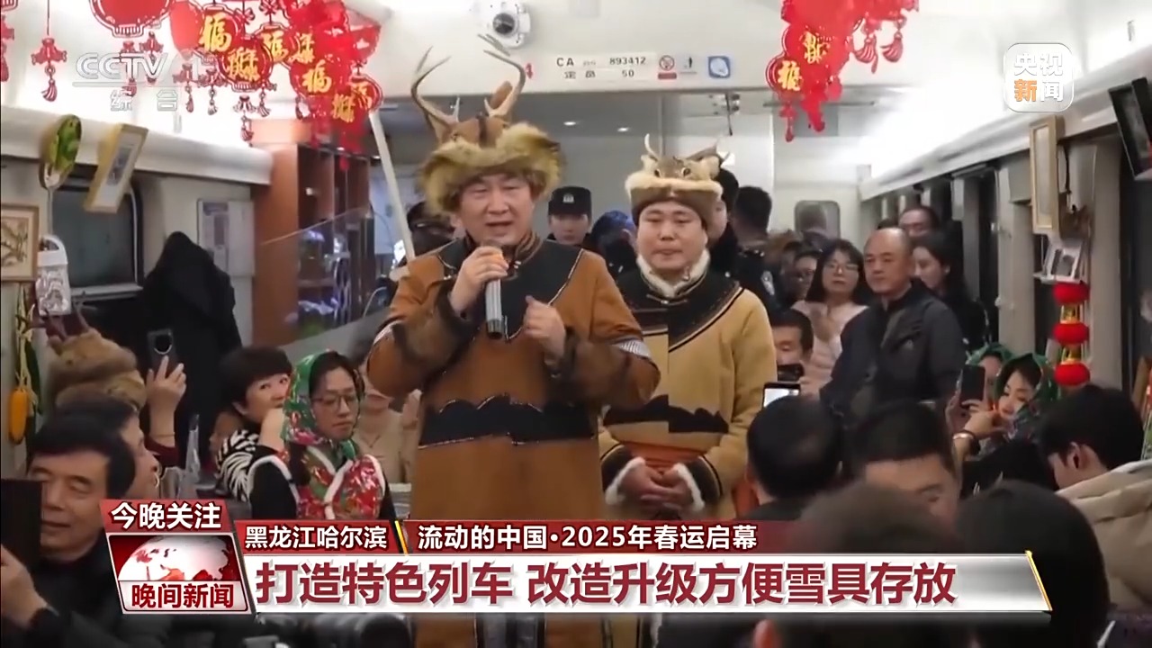 受冰雪旅游、春節(jié)返鄉(xiāng)等客流疊加的影響,春運(yùn)開(kāi)啟首日,黑龍江哈爾濱的鐵路運(yùn)輸一片繁忙。春運(yùn)期間,這里會(huì)繼續(xù)開(kāi)行非遺列車(chē),為游客展示樺皮畫(huà)、面塑、刺繡等非遺內(nèi)容。讓游客在暢游冰雪的同時(shí),感受“非遺春節(jié)”。部分列車(chē)還進(jìn)行了改造升級(jí),把行李箱包的位置改為放置滑雪板等雪具用品的存放區(qū)域。