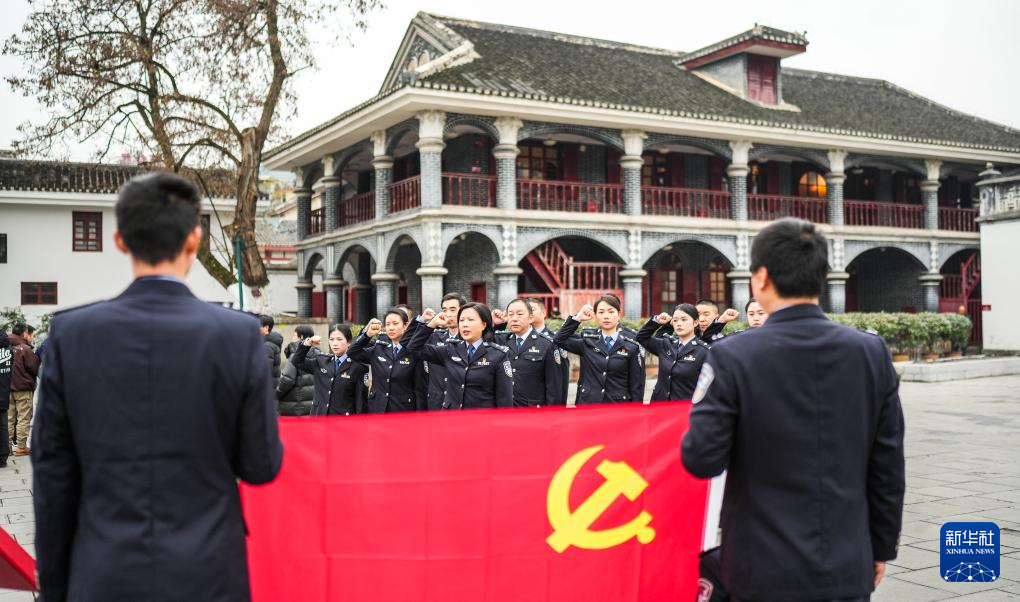 基層民警在遵義會(huì)議會(huì)址前重溫入黨誓詞(2025年1月7日攝)。新華社記者 陶亮 攝