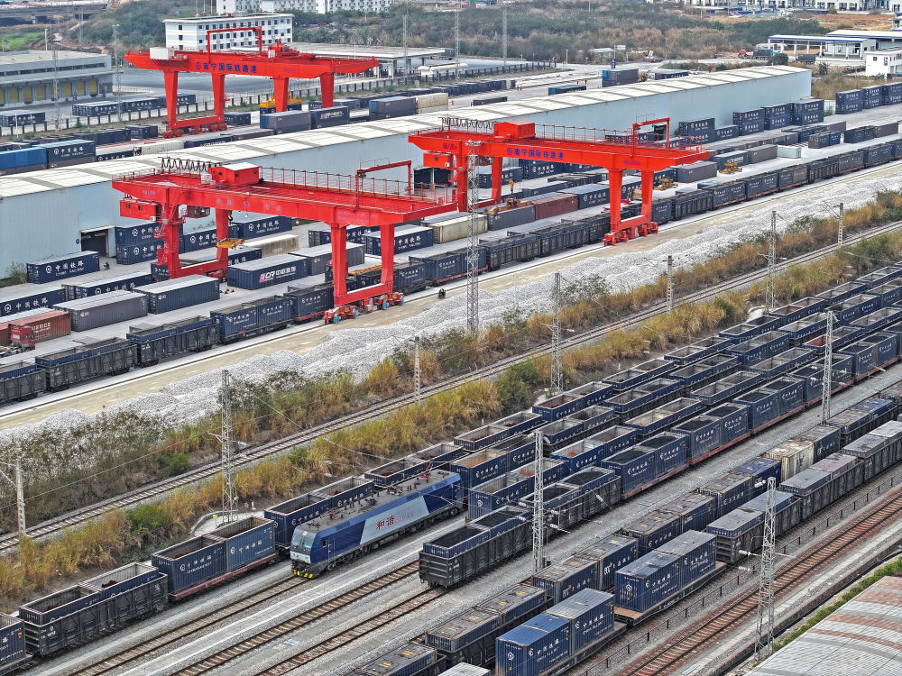 1月15日,中越年貨班列在南寧國(guó)際鐵路港整裝待發(fā)。新華社發(fā)