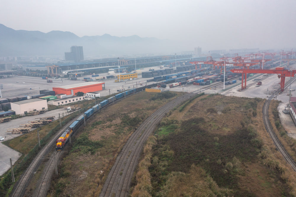 1月17日,重慶鐵路口岸公司的工作人員將海關查驗合格的貨物裝車。新華社記者 黃偉 攝