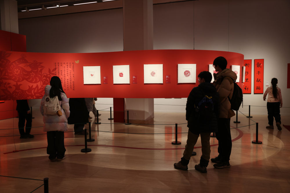 2024年12月21日,觀眾在中國(guó)非物質(zhì)文化遺產(chǎn)館參觀“過(guò)年——春節(jié)主題展”。新華社記者 李賀 攝