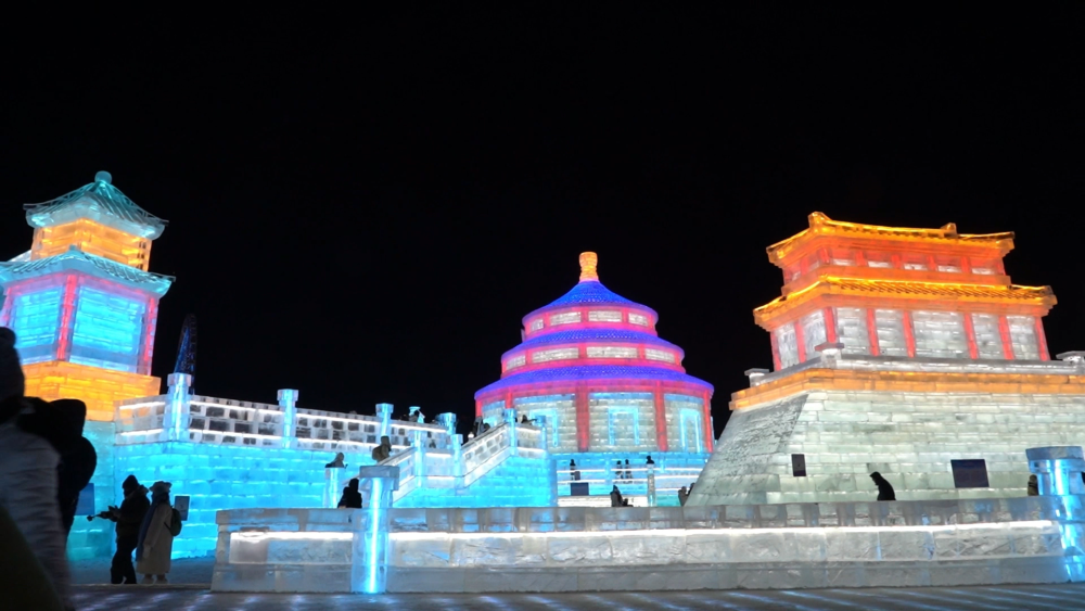 在冰雕雪塑的世界里,一座座以中式建筑為藍(lán)本的冰建筑巍峨聳立,哈爾濱不斷向世界展示多姿多彩的國風(fēng)元素。匠人們憑借精湛技藝,以冰雪為筆,緩緩鋪陳開一幅幅中國歷史文化的壯麗畫卷。