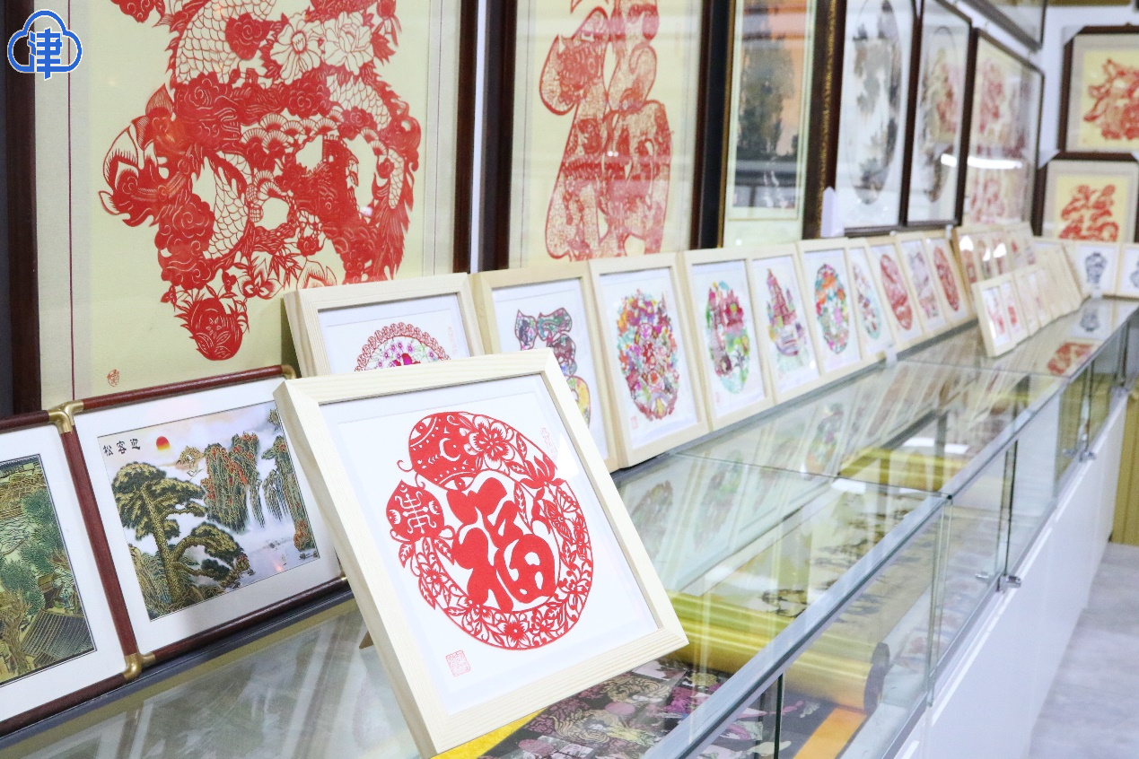 在戲樓對面,楊柳青剪紙世家第四代傳人,郝桂芬的剪紙鋪吸引了眾多游客的駐足。郝桂芬既是店鋪的“當(dāng)家人”,也是非遺剪紙項(xiàng)目的代表性傳承人。楊柳青剪紙的技法,既需要用北方剪刀剪出輪廓,又需要用南方刻刀雕飾細(xì)節(jié)。郝桂芬的獨(dú)門絕技——染色剪紙,是先用白紙剪出樣式,再用楊柳青年畫的技法上色。她的剪紙作品包括花鳥魚蟲、神話故事、喜慶吉祥圖案等,深受游客喜愛。在這里,游客們不僅可以購買到精美的剪紙作品,還能在學(xué)習(xí)體驗(yàn)剪紙技法,感受指尖上的古老藝術(shù)。