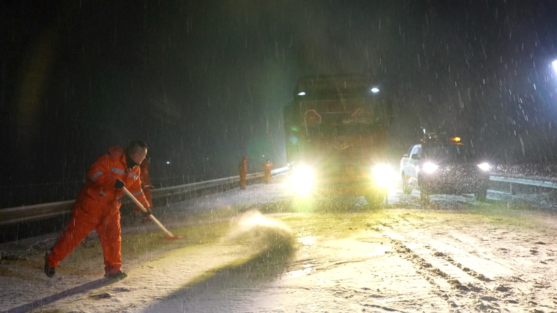 大貨車打滑熄火,記者步行都極易摔倒。23名公路人緊急出動(dòng),大型除雪車、破冰車、融雪劑撒布車不間斷作業(yè)。