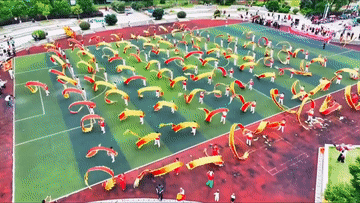 在當(dāng)?shù)匾恍W(xué)校,舞彩帶龍成為“特色”課間操。