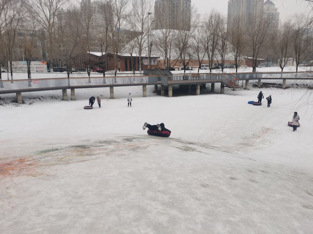 在哈爾濱湘江公園,28日一早,10歲的黃梓天就和爸爸一起來玩雪圈。這處公園里形成的自然雪坡,每年冬季都成為市民滑雪圈的好去處。“早上孩子要來,就帶著過來玩一會(huì),也是一種過年的方式。”黃梓天的父親黃文說。