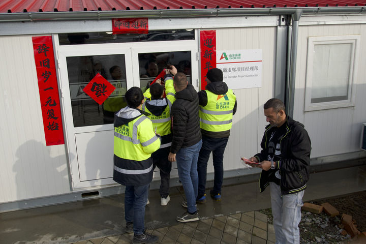 “春聯(lián)一貼,年味兒就濃了!”除夕當天,塞爾維亞“多瑙走廊”快速路項目綜合部負責人吳一帶著塞籍員工一起貼春聯(lián)裝扮項目營地,現(xiàn)場一片歡聲笑語。