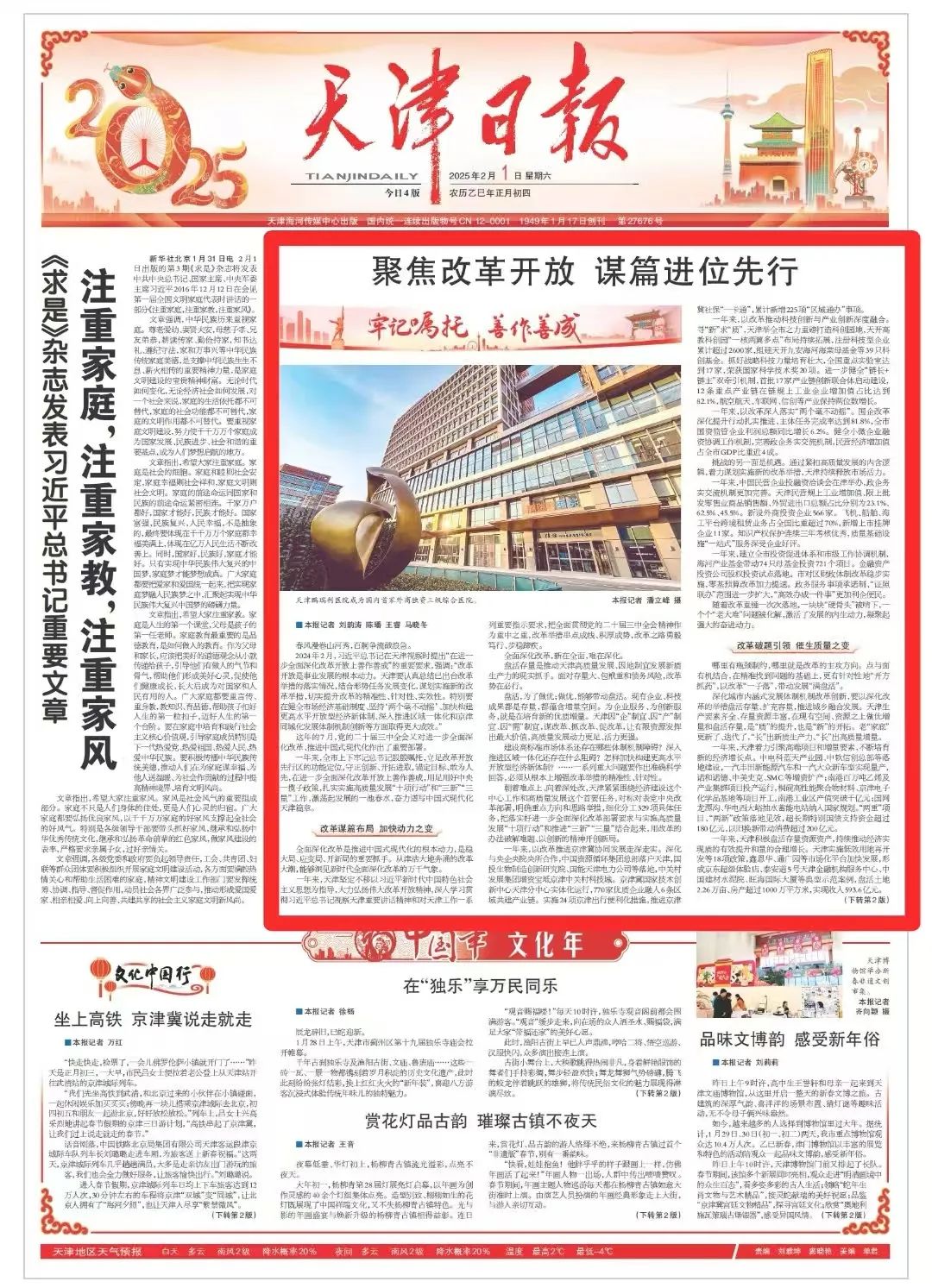 一年來(lái),天津堅(jiān)定不移以習(xí)近平新時(shí)代中國(guó)特色社會(huì)主義思想為指導(dǎo),大力弘揚(yáng)偉大改革開(kāi)放精神,深入學(xué)習(xí)貫徹習(xí)近平總書(shū)記視察天津重要講話精神和對(duì)天津工作一系列重要指示要求,把全面貫徹黨的二十屆三中全會(huì)精神作為重中之重,改革舉措串點(diǎn)成線、積厚成勢(shì),改革之路勇毅篤行、步穩(wěn)蹄疾。