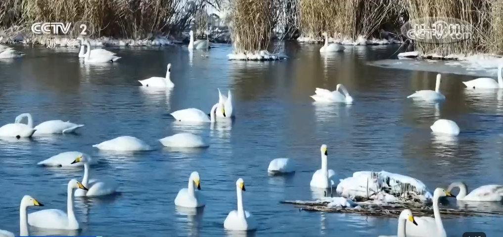 這兩天,在瑪納斯國家濕地公園天鵝緣景區(qū),近千只身姿優(yōu)雅的大天鵝集聚在一起棲息覓食。潔白的大天鵝或臥或立,或引吭高歌,靈動的身影與茫茫雪景相互交織,游客紛紛拍照留念,捕捉最美的時刻。