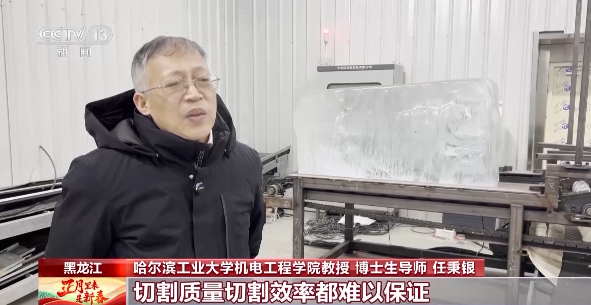 哈爾濱工業(yè)大學(xué)機電工程學(xué)院教授、博士生導(dǎo)師 任秉銀:這么多年來建冰雕設(shè)施用的冰一直都是人工在切,使用手工鋸,切割質(zhì)量切割效率都難以保證。在這種情況下,對智能自動化生產(chǎn)標(biāo)準冰砌塊的需求十分迫切。