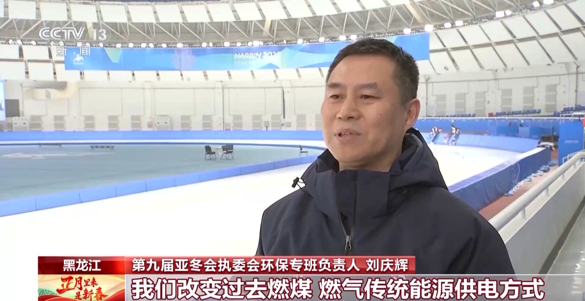 第九屆亞冬會執(zhí)委會環(huán)保專班負責(zé)人 劉慶輝:我們改變過去燃煤、燃氣傳統(tǒng)能源供電方式,立足我們黑龍江省本身豐富的風(fēng)力等自然資源,全面開發(fā)使用綠色清潔能源,本地的這些發(fā)電企業(yè)產(chǎn)生風(fēng)能、太陽能等清潔能源將源源不斷地輸入我們的各個場館,全面滿足我們賽時各個場館的用電需求,在亞冬會史上是首次實現(xiàn)綠電100%全覆蓋。