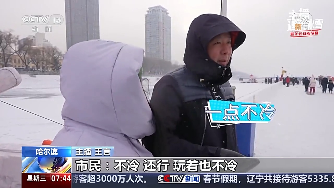 游客:我是老家在這邊,但我們是杭州過(guò)來(lái)的,我們杭州辦了亞運(yùn)會(huì),然后正好家鄉(xiāng)在哈爾濱,就想支持一下家鄉(xiāng)的亞冬會(huì),我們亞冬會(huì)有買(mǎi)那個(gè)冰球運(yùn)動(dòng)的票,然后可以感受一下冰雪的盛會(huì),運(yùn)動(dòng)帶給我們的一些熱血,那種燃情。