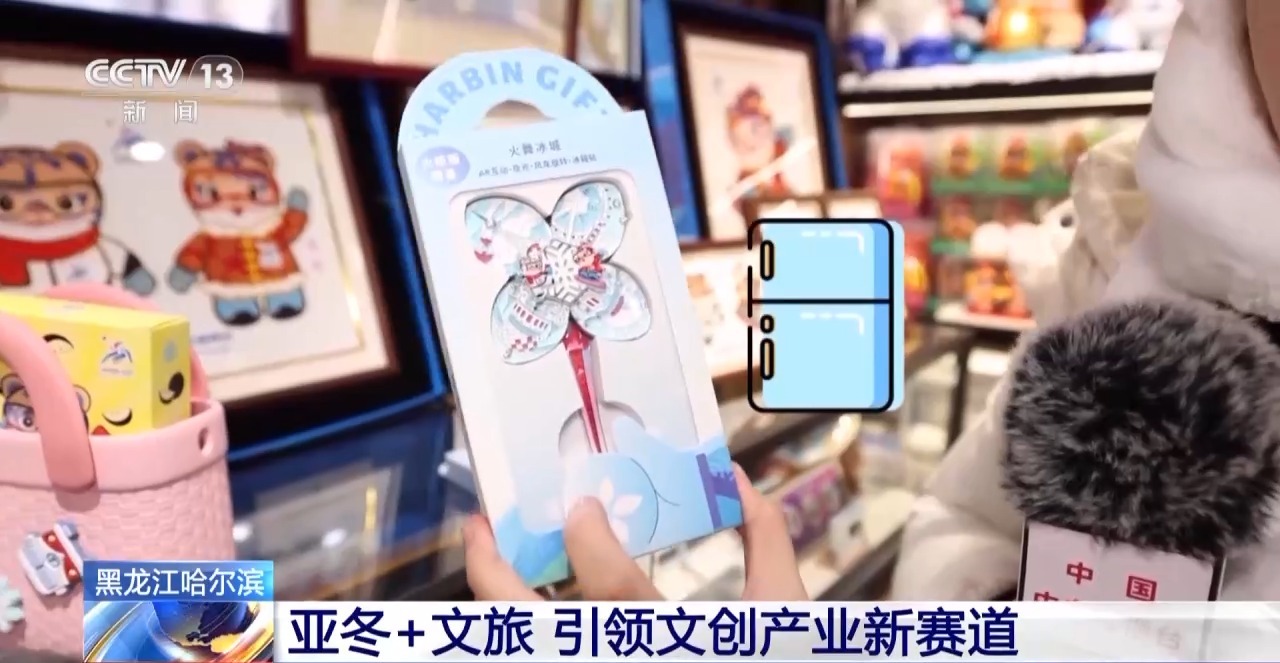 總臺記者 張程:第二個(gè)特點(diǎn),就是亞冬會的文創(chuàng)產(chǎn)品非常具有科技感。比如說這款冰箱貼,我們只要掏出手機(jī)掃一掃,就能夠收獲一段你和爾濱之間的獨(dú)家緣分。