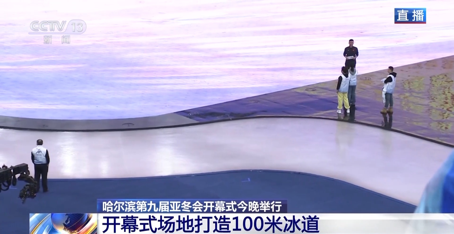 同時,第九屆亞冬會開閉幕式總制作人吳艷表示,今晚開幕式的場館也是亮點多多。為了在室內場館中展現(xiàn)冰雪的特質,觀眾一進入場館,就能看到一條100米長的冰道,這條冰道呈飄帶狀,旨在讓觀眾近距離感受冰雪運動的魅力。
