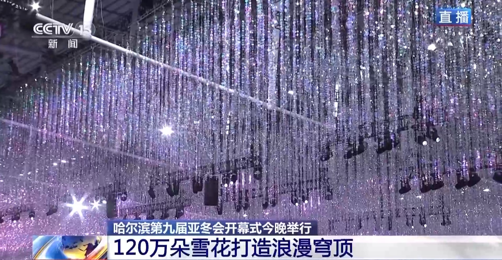 此外,場館穹頂懸掛了120萬朵發(fā)光的小雪花片,這些雪花片材質輕盈,既不影響承重,又增添了沉浸感。觀眾一進入場館,便能感受到濃郁的冰雪氛圍,仿佛置身于哈爾濱這座冰雪之城的會客廳。
