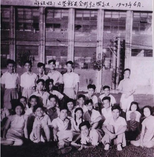上海解放后,“山茶社”社員在上海交通大學校園合影,前排臥者為黃旭華。新華社發(fā)