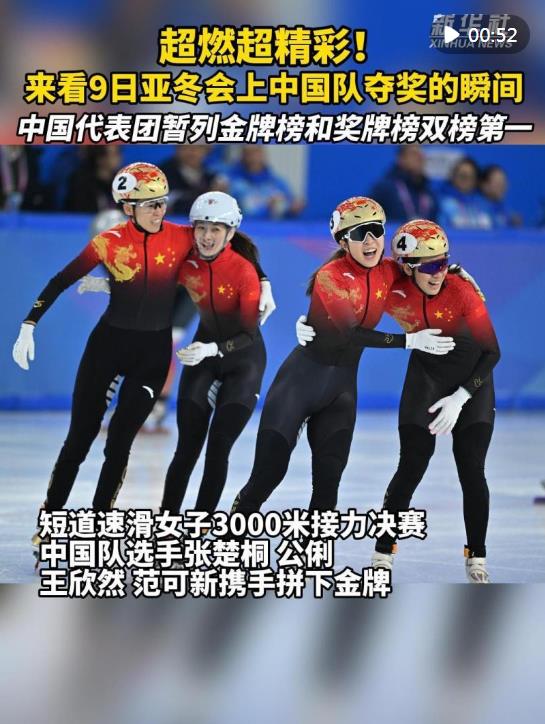 短道速滑女子3000米接力決賽中,中國隊(duì)選手范可新、公俐、張楚桐、王欣然攜手拼下金牌;男子5000米接力決賽中,中國隊(duì)選手劉少昂、林孝埈、孫龍、劉少林?jǐn)y手摘得銅牌。