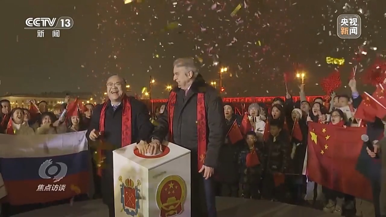 在俄羅斯第二大城市圣彼得堡,橫跨涅瓦河的冬宮橋在《春節(jié)序曲》的悠揚(yáng)旋律中徐徐開啟。橋身燈光閃亮的“中國(guó)紅”映照在河面上,給寒冷的冬夜帶來(lái)濃濃暖意和喜慶氣息,這是圣彼得堡首次為外國(guó)節(jié)日開橋。