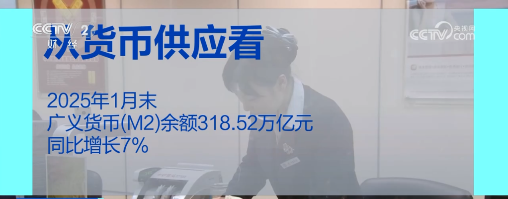 從貨幣供應(yīng)看,2025年1月末,廣義貨幣(M2)余額318.52萬億元,同比增長7%。從信貸投放看,1月末,人民幣貸款余額260.77萬億元,同比增長7.5%;1月份,人民幣貸款增加5.13萬億元,同比多增2133億元。